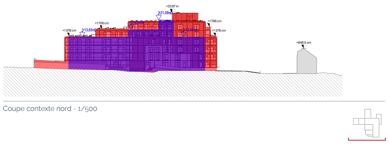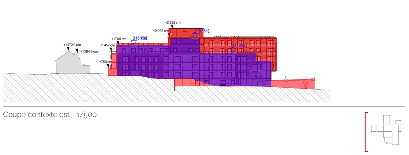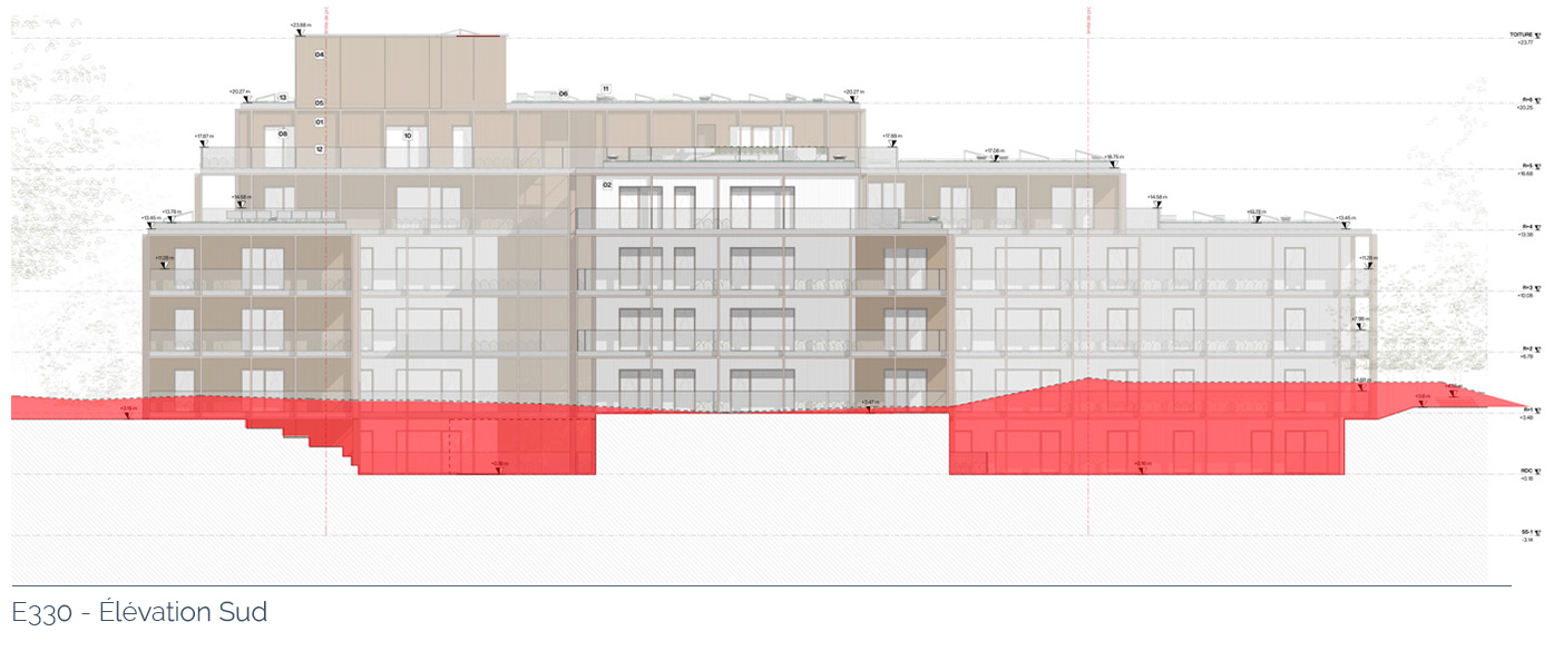 Sans compter que le bâtiment est construit plus proche du front bâti existant (+/-5m30).