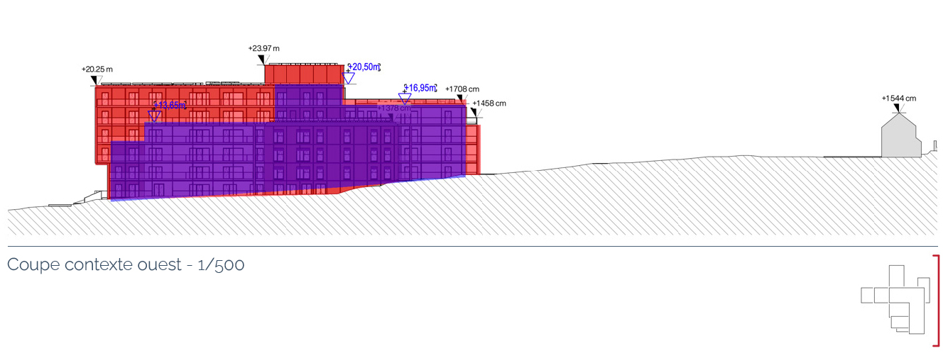 Actuellement, la densité du quartier s’élève a 55 logements à l’hectare. Le projet propose à lui seul sur sa parcelle une densité de 103 logements à l’hectare, soit le double.